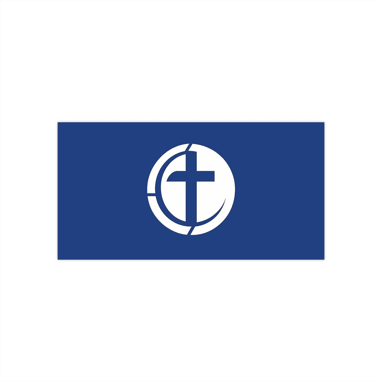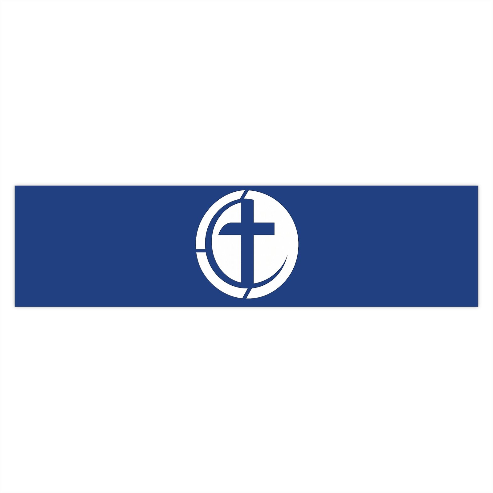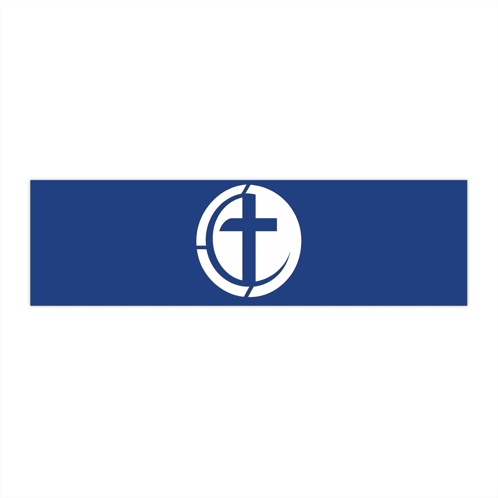 A durable, matte-finish bumper sticker that carries a simple, meaningful emblem — a stylized cross within a circular frame on a rich navy background. Weather-ready and subtly refined, it clings securely to bumpers, windows, water bottles, or instrument cases without drawing too much attention, while still signaling faith and community. The low-reflective matte finish keeps the design readable in daylight and reduces glare, and the UV protective laminate helps the colors stay true through sun and rain. Easy-peel backing and waterproof adhesive make application quick and long-lasting, so it becomes a quiet part of daily drives, weekend road trips, or church outreach activities.