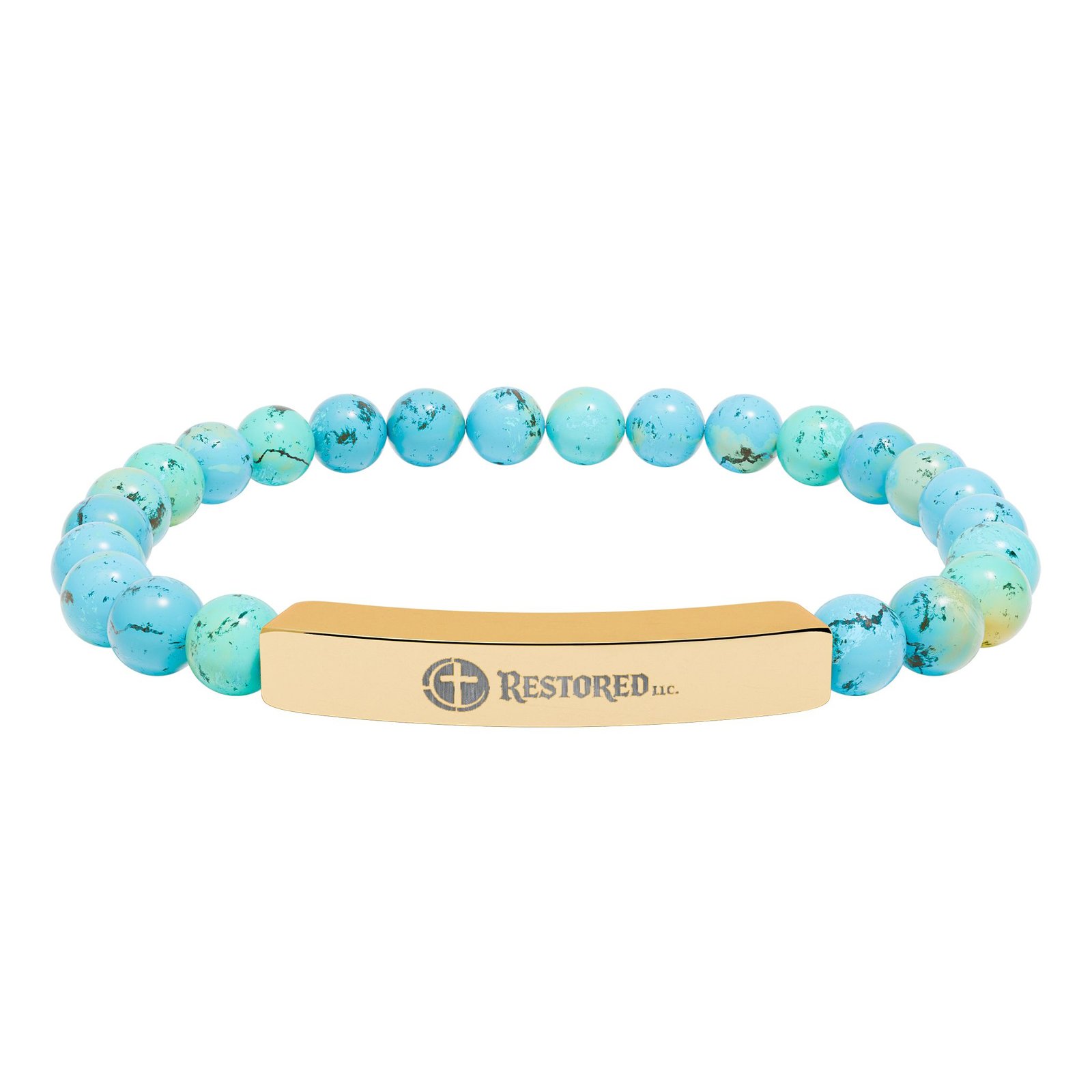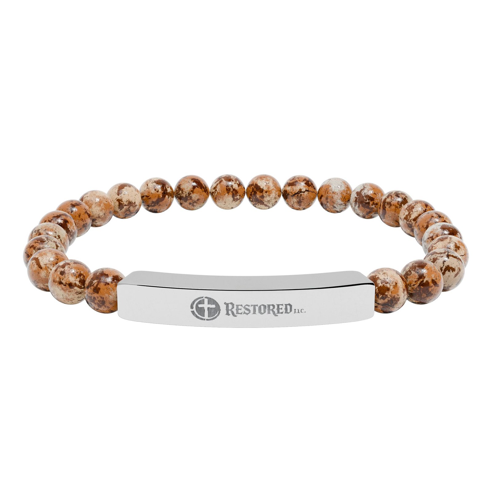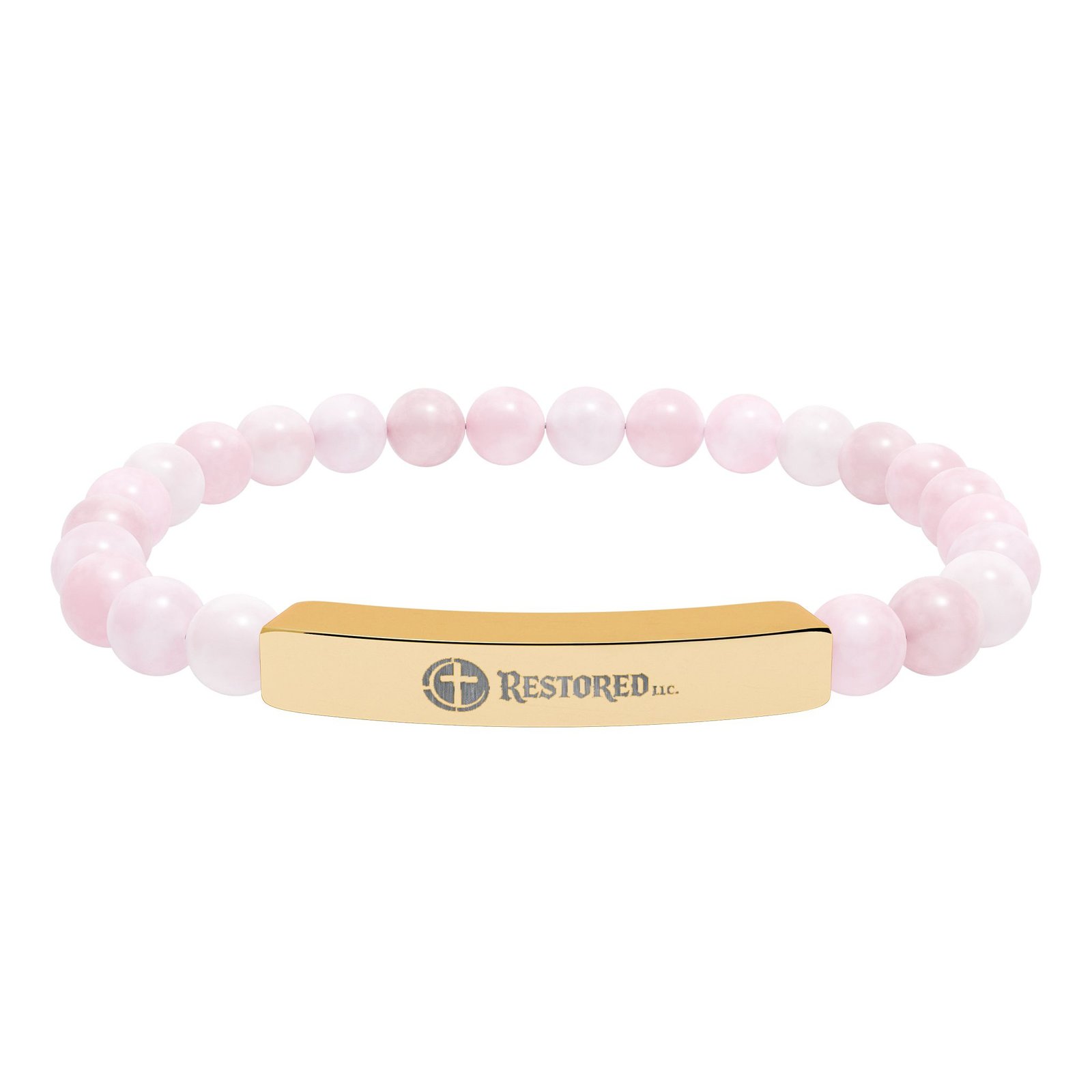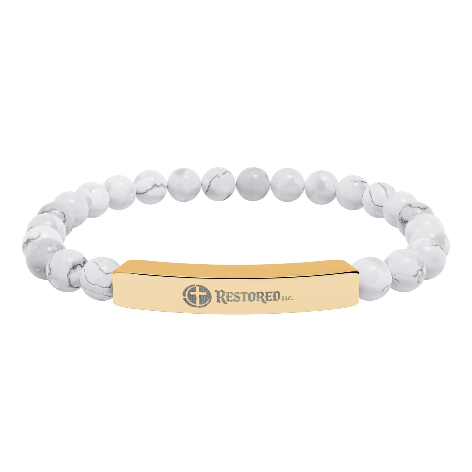 A calm, grounding bracelet that pairs cool stainless steel with smooth natural stone beads. The low-profile bar bears a crisp engraved motif, so the piece reads as quietly refined while staying durable for everyday wear. Soft, neutral stones—matte pastels or marble-like white—lend an organic touch that settles into a casual or slightly dressed-up look. It slips on easily and rests light on the wrist, a subtle reminder of steadiness and simple style.